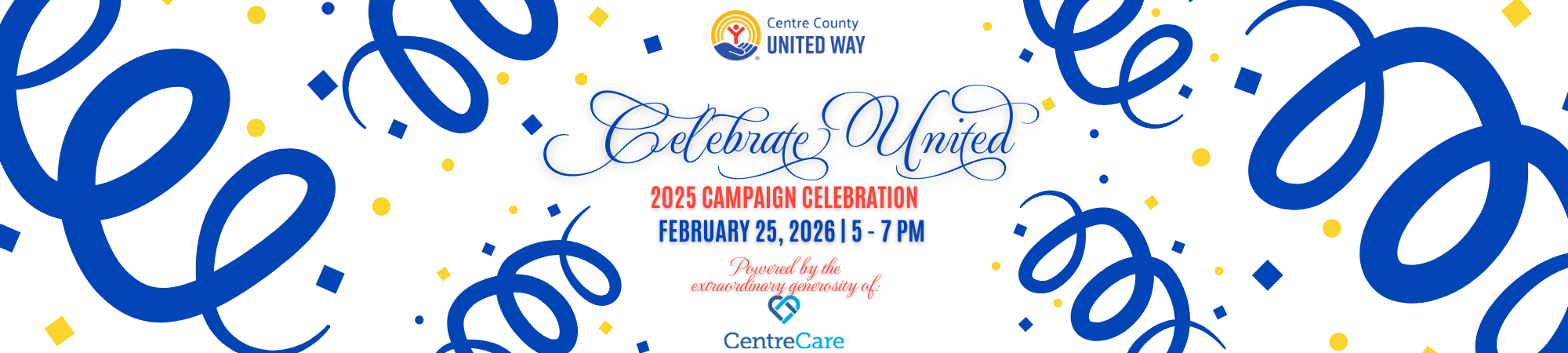 Centre County, PA — Centre County United Way (CCUW) will host Celebrate United, a campaign celebration event marking the conclusion of its 2025 Annual Campaign, on Wednesday, February 25, from 5:00 p.m. to 7:00 p.m. at Centre Care.